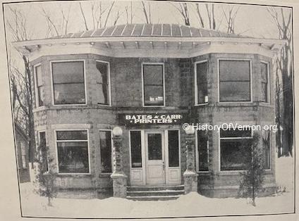 Photo of the stone block building, originally Pohl's Engine Works factory offices, then Pohl family office and offices of Bates & Carr printers.